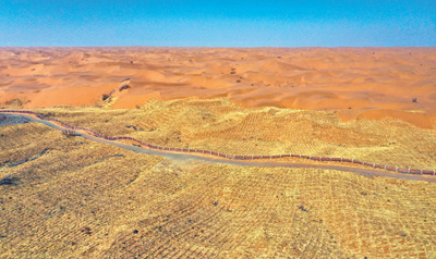 治沙防護(hù)體系守護(hù)包蘭鐵路平穩(wěn)運(yùn)行。 |
