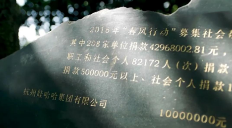 自2011年起,娃哈哈聯(lián)合杭州市總工會“春風(fēng)行動”辦公室,開啟了“娃哈哈·春風(fēng)助學(xué)”專項援助項目,主要資助建檔困難家庭子女就讀國內(nèi)全日制普通高校、成人高校、高等職業(yè)學(xué)校。自設(shè)立以來,累計幫助5萬多名困難學(xué)生走進(jìn)大學(xué)校園。