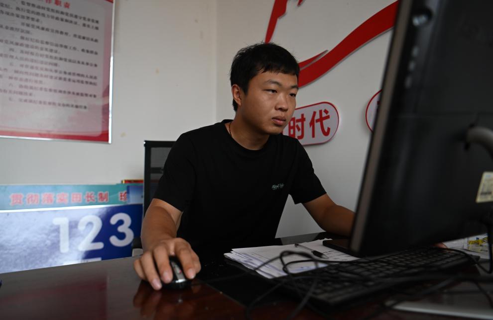 陳曦在統(tǒng)計(jì)群眾轉(zhuǎn)移情況。新華社記者 趙子碩 攝