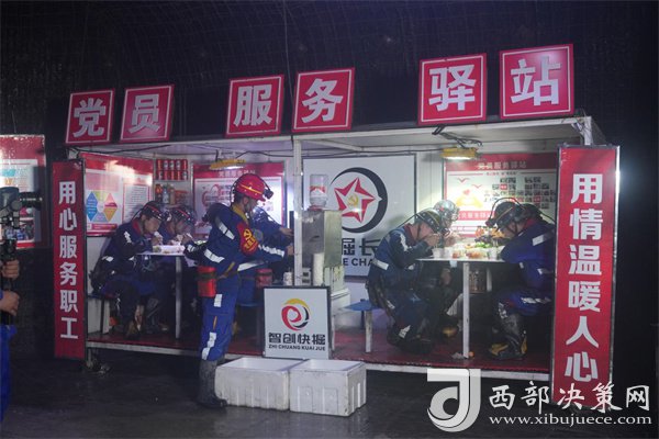 西部決策網(wǎng)訊 “開(kāi)飯啦!”隨著技術(shù)員劉彪的一嗓子,大家紛紛放下手中工具向“餐廳”聚攏,豐富多樣的班中餐在餐桌上一字排開(kāi),散發(fā)著熱氣騰騰的香味,職工一邊吃著可口的飯菜,一邊討論著接下來(lái)的工作。這是發(fā)生在檸條塔礦業(yè)有限公司掘進(jìn)三工區(qū)井下工作面現(xiàn)場(chǎng)的一幕。