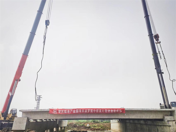 近日,肇慶新區(qū)臨港產(chǎn)業(yè)園波羅竇中橋首片預制箱梁架設完成,標志中鐵一局一公司承建的肇慶臨港產(chǎn)業(yè)園項目施工生產(chǎn)按下“快進鍵”。