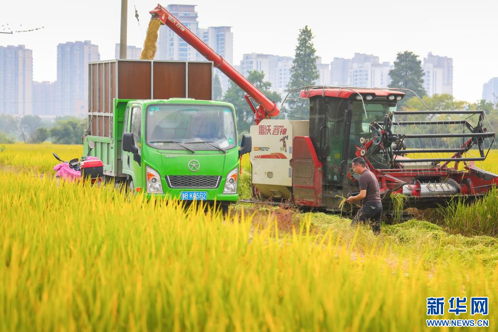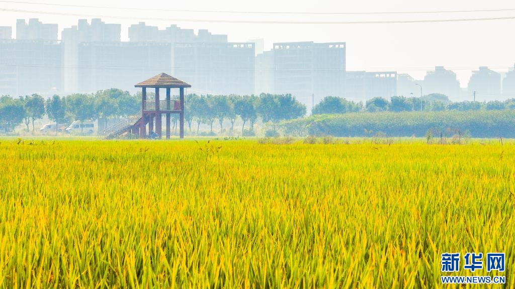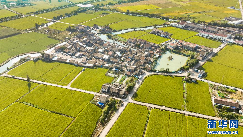 阡陌縱橫的田野里,金黃色的稻穗鋪滿稻田。