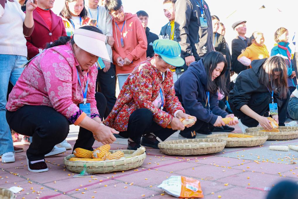 徒手剝玉米粒、扭扁擔(dān)、長(zhǎng)筷子夾洋芋……為了慶祝豐收,貴州山區(qū)的農(nóng)民們聚到一起,把農(nóng)活中最常見(jiàn)的挑、抬、扛等動(dòng)作變?yōu)檫\(yùn)動(dòng)比拼,讓一場(chǎng)鄉(xiāng)村運(yùn)動(dòng)會(huì)充滿(mǎn)了“農(nóng)趣”。