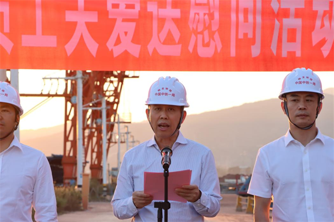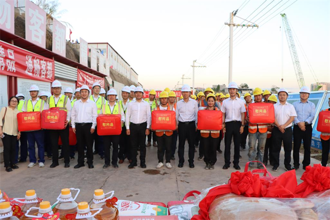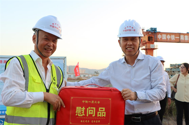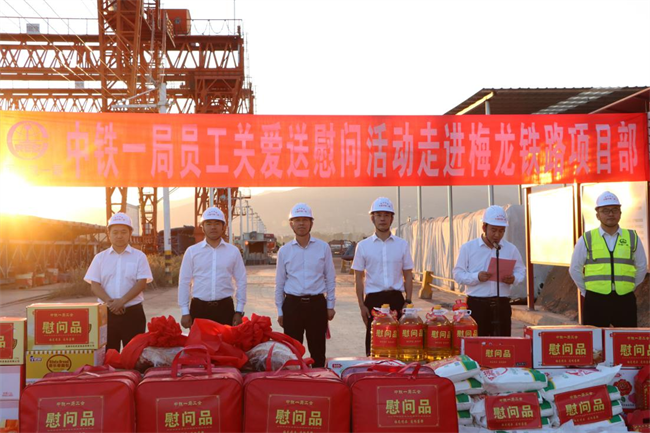 年終歲寒,元旦將至。為深入貫徹落實黨的二十大和中國工會十八大精神,把黨的關懷和公司工會的溫暖及時送到廣大職工群眾的心坎上。12月11日下午,中鐵一局“員工關愛送慰問”活動走進中鐵一局梅龍鐵路項目施工現(xiàn)場。中鐵一局黨委副書記、工會主席王新年,一公司總經(jīng)理韓勝,副總經(jīng)理、工會主席應曉峰等共同為項目一線參建職工送去暖心關愛。