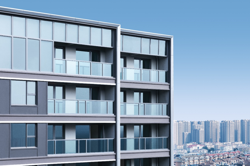 立面打造上,桂語朝陽是綠城創(chuàng)新Design系立面在青島的首次落地,實景下的建筑立面簡潔、俊朗,現(xiàn)代極簡的建筑工藝美學(xué)呈現(xiàn)極具辨識度的扁平化質(zhì)感,超纖細(xì)金屬鋁板邊框和大面積玻璃的創(chuàng)新應(yīng)用,力求營造溫暖沉穩(wěn),輕奢典雅的立面調(diào)性。而且這種建筑外墻材質(zhì)造價很高,但是可以使樓體始終保持“歷久彌新”的感覺。