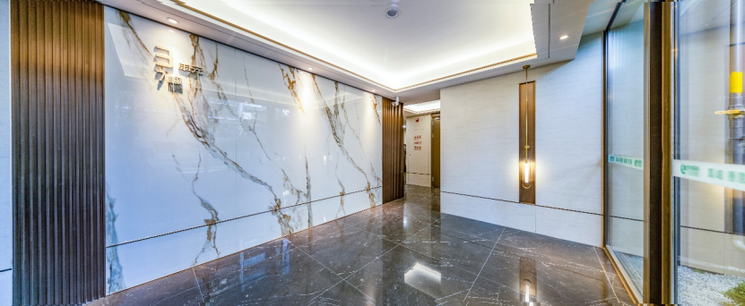 地下光廳的打造,以沖孔鋁板頂面,搭配以900x1800大規(guī)格墻面瓷磚+木紋冰火板,消防功能之上品質(zhì)感滿格。種種細(xì)節(jié)升級,只為給業(yè)主帶來富有質(zhì)感的生活居住體驗。