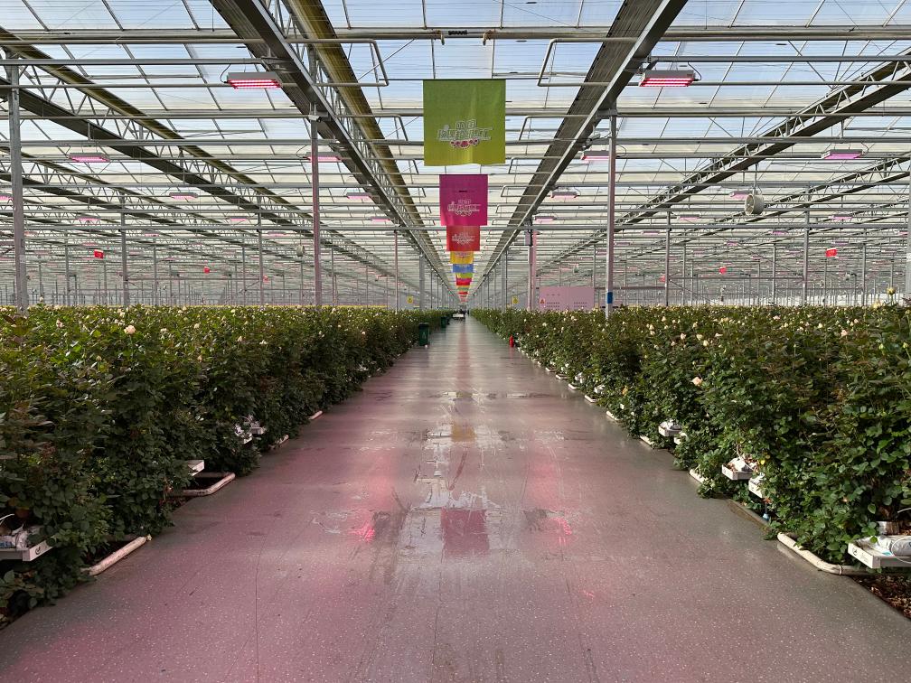 甘肅臨夏百益億農(nóng)國際鮮花港玫瑰工廠一景。 新華社記者 張文靜 攝