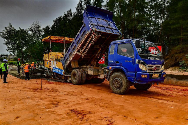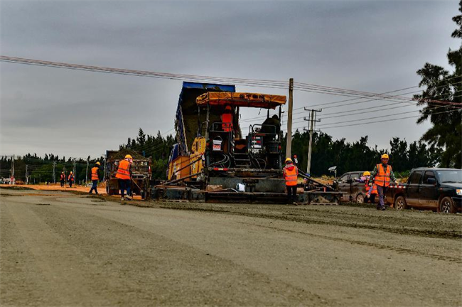 開始攤鋪施工