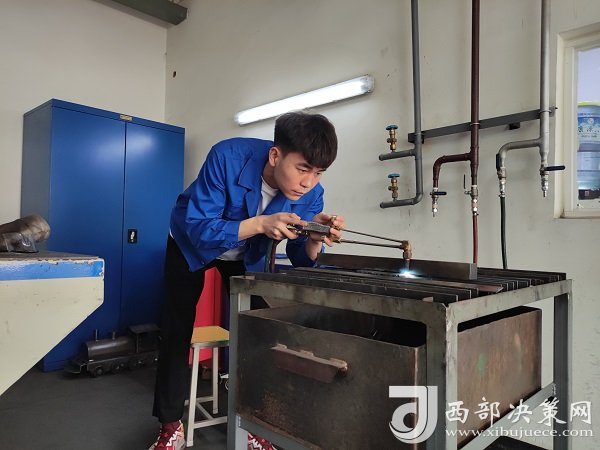見到黨金鑫時,他正在實訓(xùn)車間緊張忙碌地備戰(zhàn)著第二屆全國職業(yè)技能大賽(世賽選拔賽),作為助教,他還同時肩負(fù)著帶領(lǐng)學(xué)生、傳授經(jīng)驗的任務(wù)??赡苓B他自己都沒想到,在這所實訓(xùn)車間內(nèi),他能將自己的才華施展得淋漓盡致,靠著一門技術(shù)實現(xiàn)了“一飛沖天”。