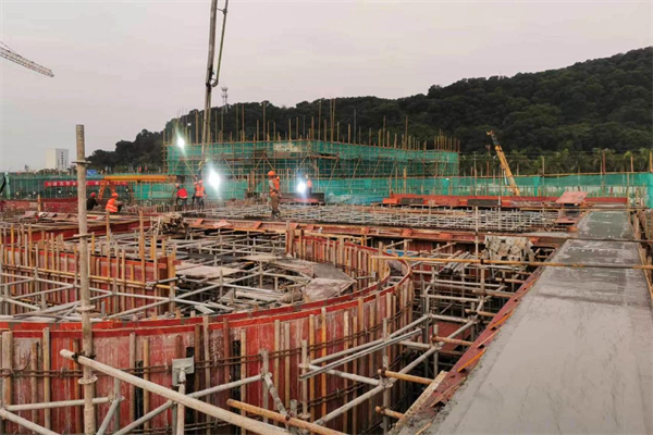 水廠項(xiàng)目開工之初,所在地的中山市有關(guān)領(lǐng)導(dǎo)希望項(xiàng)目部能夠起到“領(lǐng)頭羊”作用。項(xiàng)目部統(tǒng)籌安排、調(diào)兵遣將、合理布局;全體參建人員錨錠目標(biāo),分兵把口、攻堅(jiān)克難、風(fēng)雨兼程,700名作業(yè)人員在有限空間里,高支模、起重吊裝、安裝起重機(jī)械、拆除現(xiàn)有工程,一派緊張大干氣象。