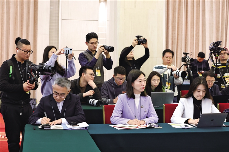 3月6日上午,陜西代表團媒體開放日活動在人民大會堂陜西廳舉行。當天,共有來自人民日報、新華社、中央廣播電視總臺、法新社、中阿衛(wèi)視等50多家中外媒體的70多名記者參加。