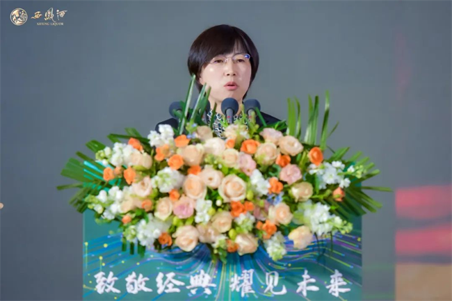 股份公司總工程師馮雅芳作“金獎西鳳酒”品質(zhì)解讀,她從“13456品質(zhì)密碼”、設計理念、精湛的工藝、精美的酒體等方面向與會嘉賓作全面解讀。
